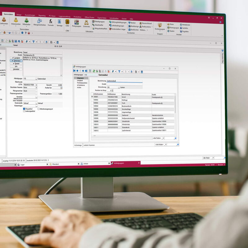 Erfolgreiche Unternehmen haben eines gemeinsam: leistungsstarke und einfach zu bedienende Softwarelösungen. Von der Angebotserstellung über die Auftragsbearbeitung bis zur Rechnungsstellung ist in der leistungsstarken Warenwirtschaft alles dabei. In Kombination mit dem Rechnungswesen behalten Sie stets den Überblick inklusive Kostenrechnung, Anlagenbuch-haltung und dem Bankassistenten. Insbesondere kleine und mittelständische Unternehmen profitieren von der branchenneutralen und benutzer-freundlichen Gestaltung. Bringen Sie Ihr Unternehmen auf das nächste Level. Wir beraten Sie, passen die Software an Ihre Bedürfnisse an und bieten umfassende Schulungen.